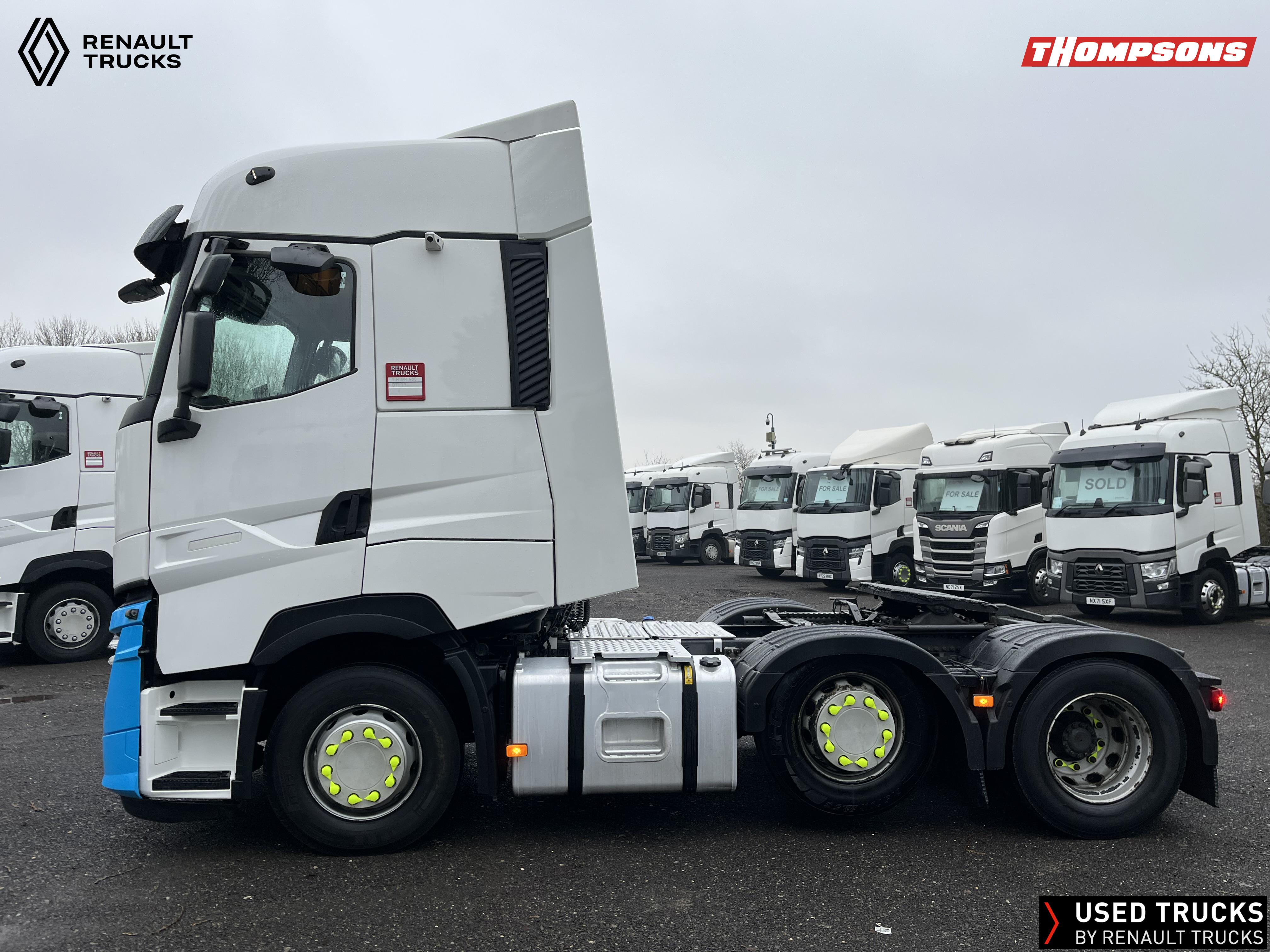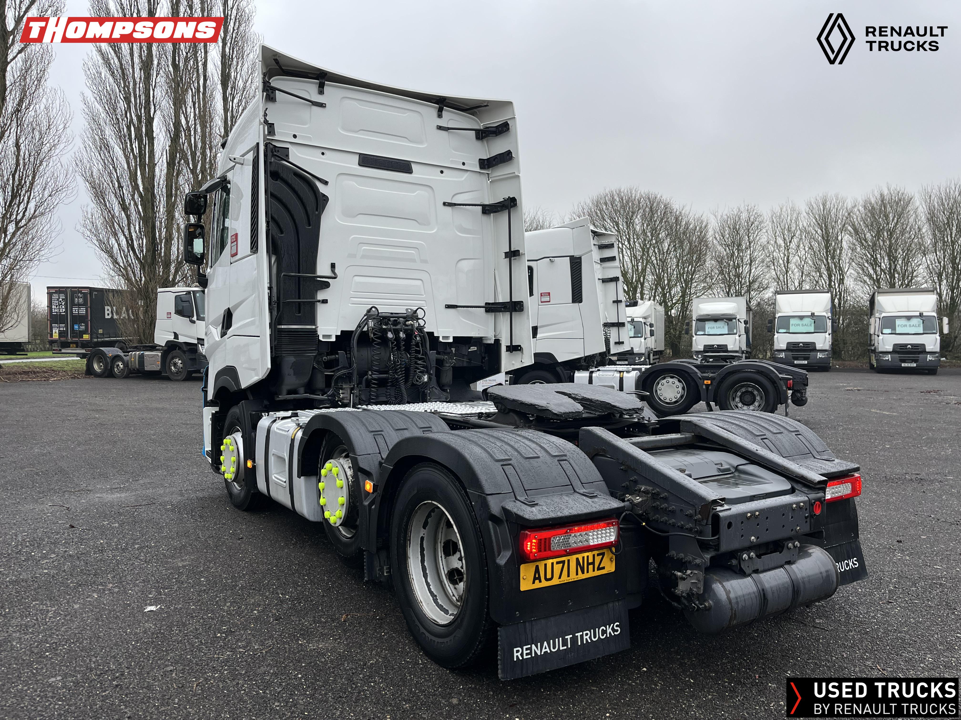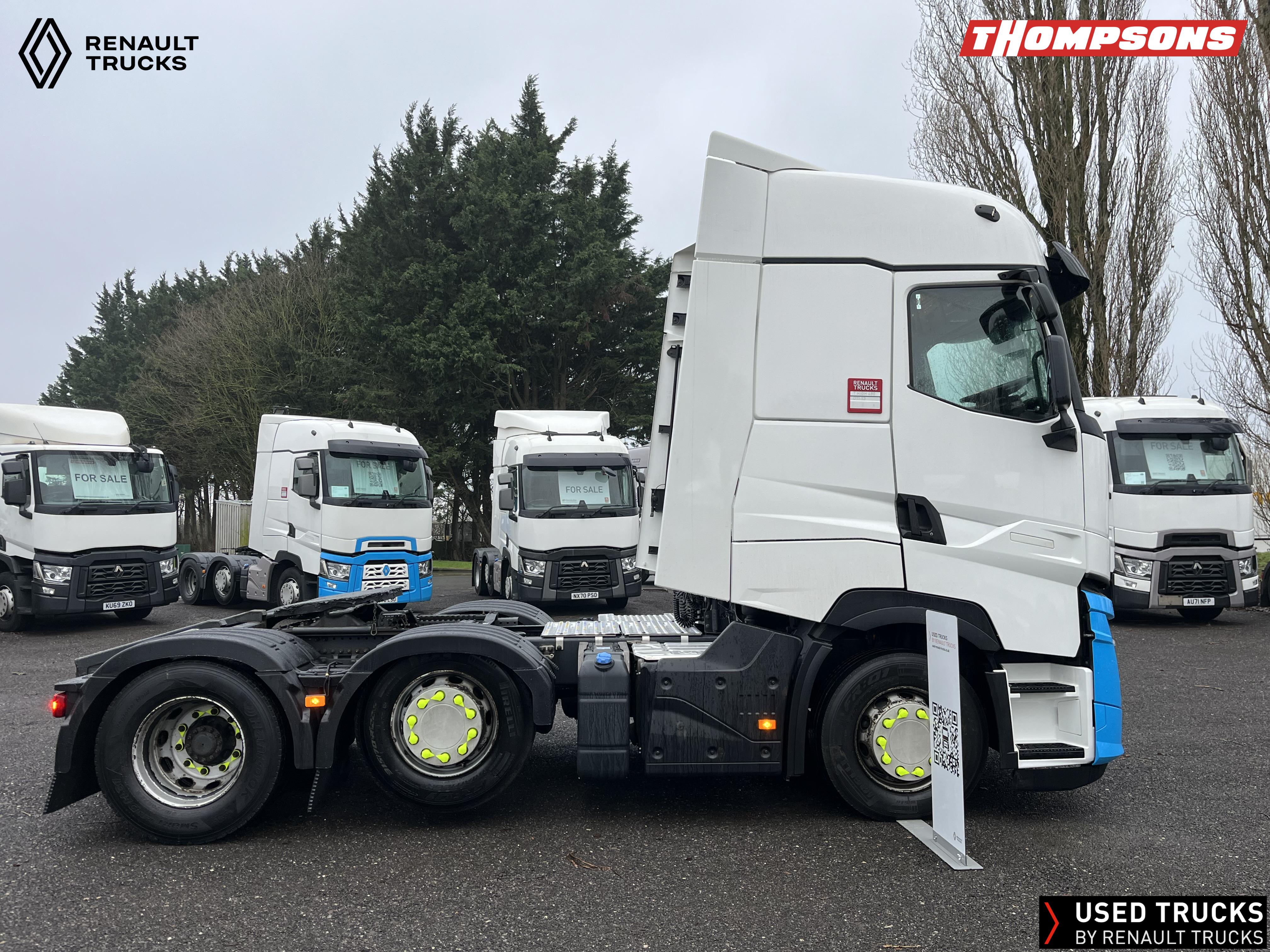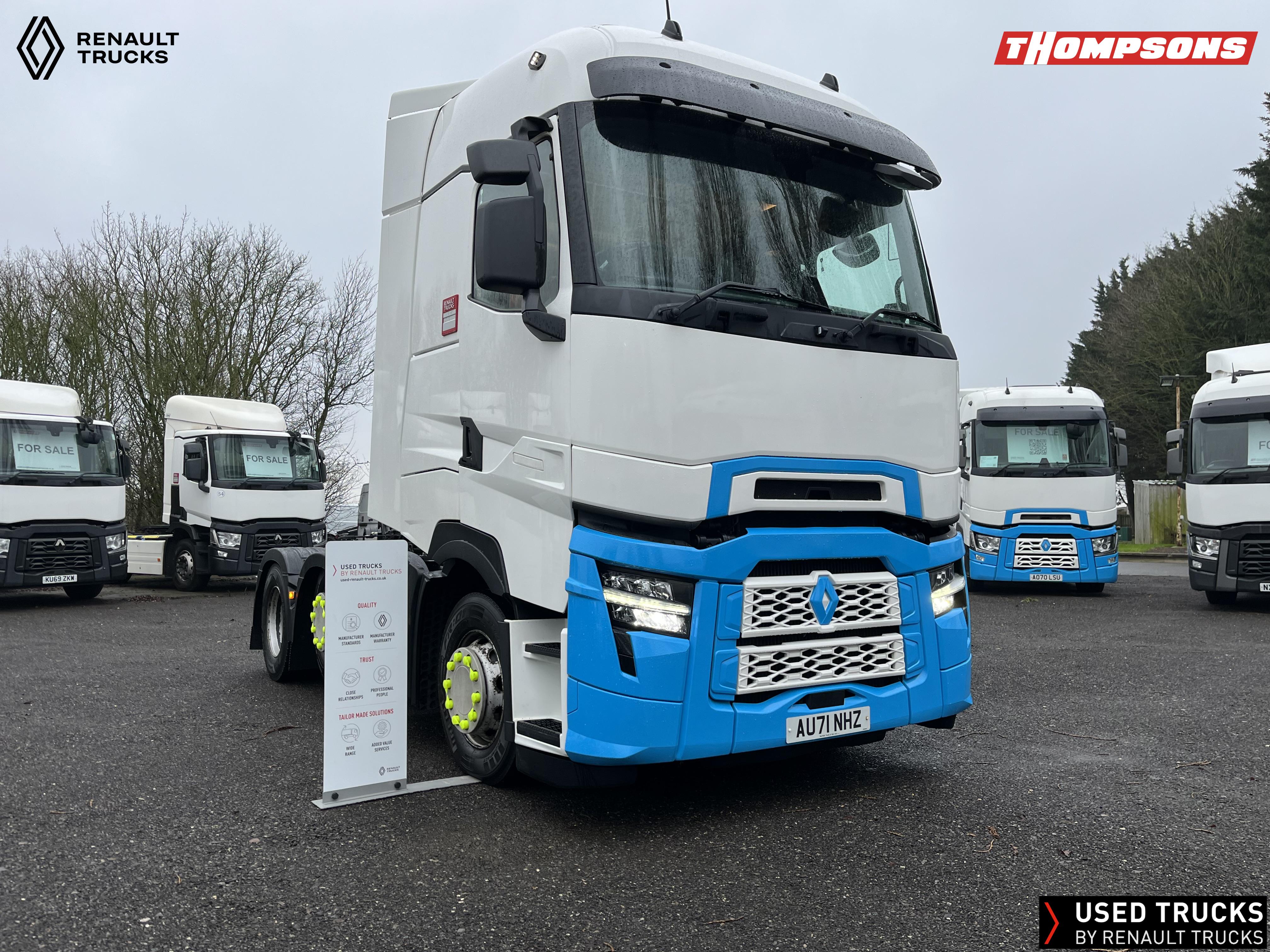 2021 (71) Renault T HIGH Evolution 480.26 TML 6x2 Tractor Unit. Maintained on a Renault Full Repair & Maintenance Contract with just 501,016kms. T HIGH Flat Floor Sleeper Cab, 13 LTR 480 BHP Euro 6 Engine & Automatic Gearbox, Engine Brake, 4-Point Cab Air Suspension, Sun visor, Cruise Control with Optiroll, Lane Departure Warning System, Emergency Brake Assist, Electronically Regulated Comfort Air Conditioning, Full Air Deflector Kit, Electric Windscreen Sunblind, Drawer under Bunk with 40 Litre Fridge, LED Cab Lighting, Remote Control in Bunk Area for Cab Controls, FM/DAB+ Radio with Bluetooth, USB Port & Jack Socket, 4 Loudspeakers & 2 Tweeters. One-Touch Electric Windows, 12/24V Sockets, Sliding 5th Wheel, LED Rear Lights, LED Day Running Lights & LED Work Light, Front Fog Lights, Automatic Lights & Wipers.