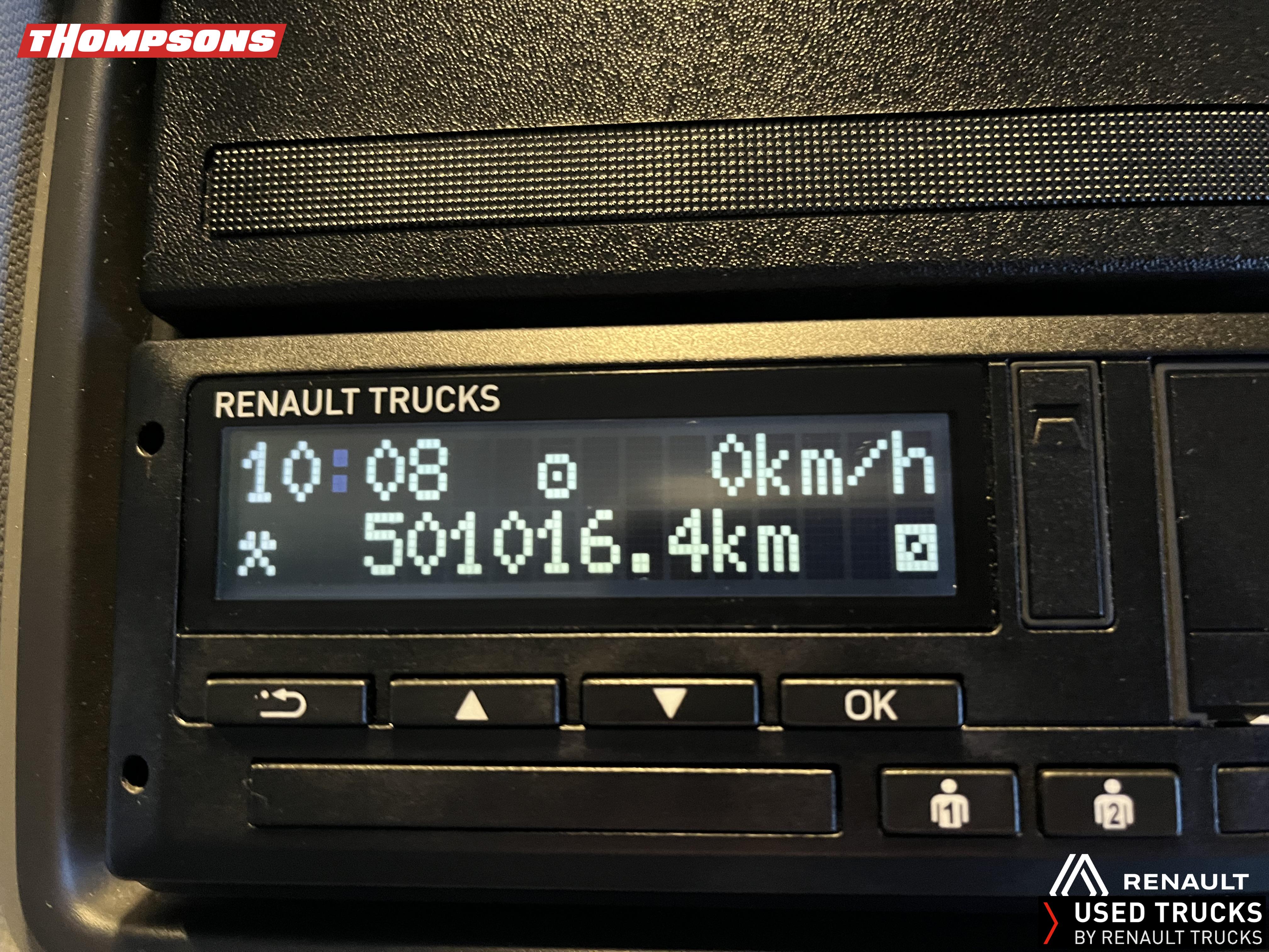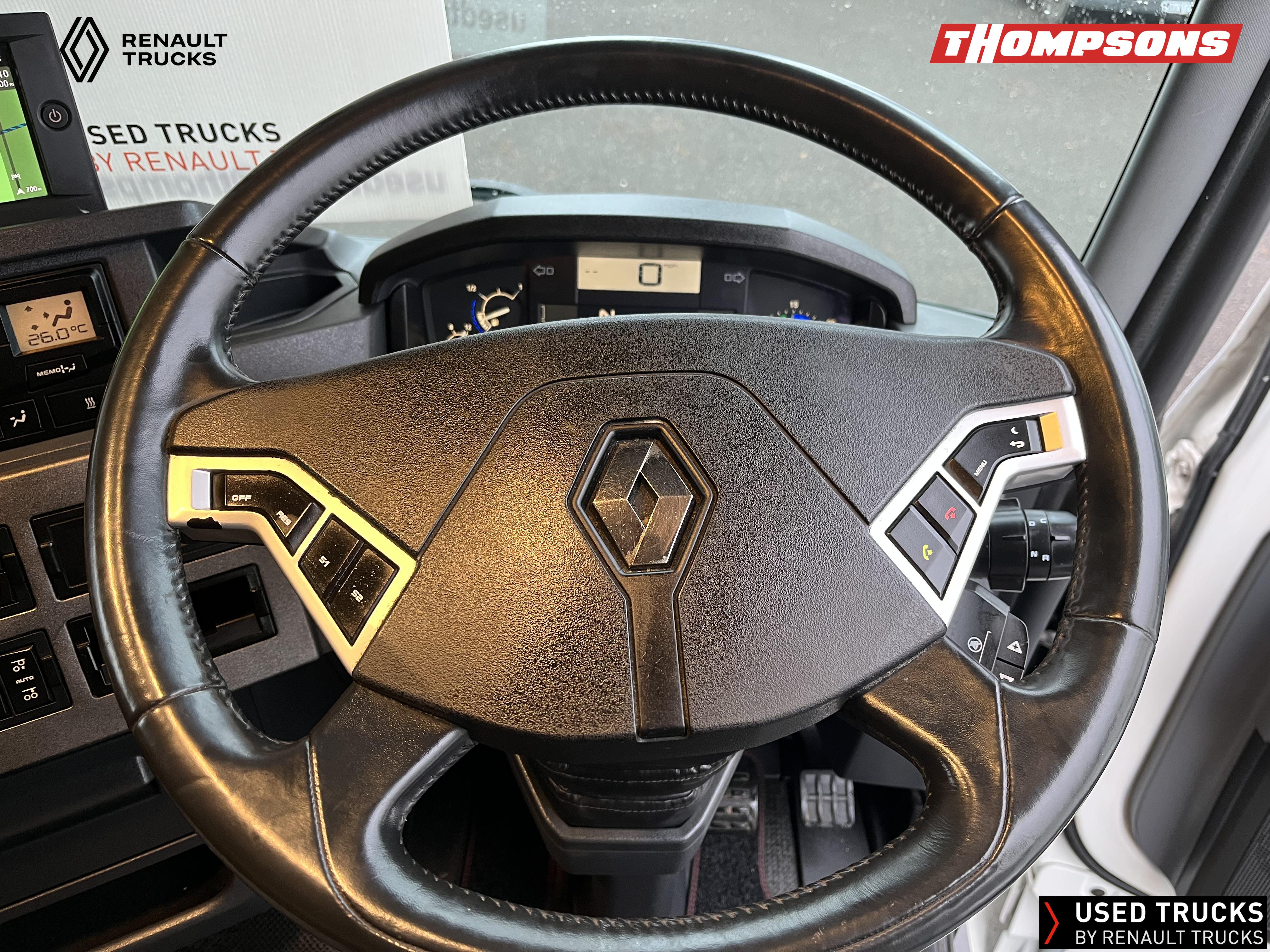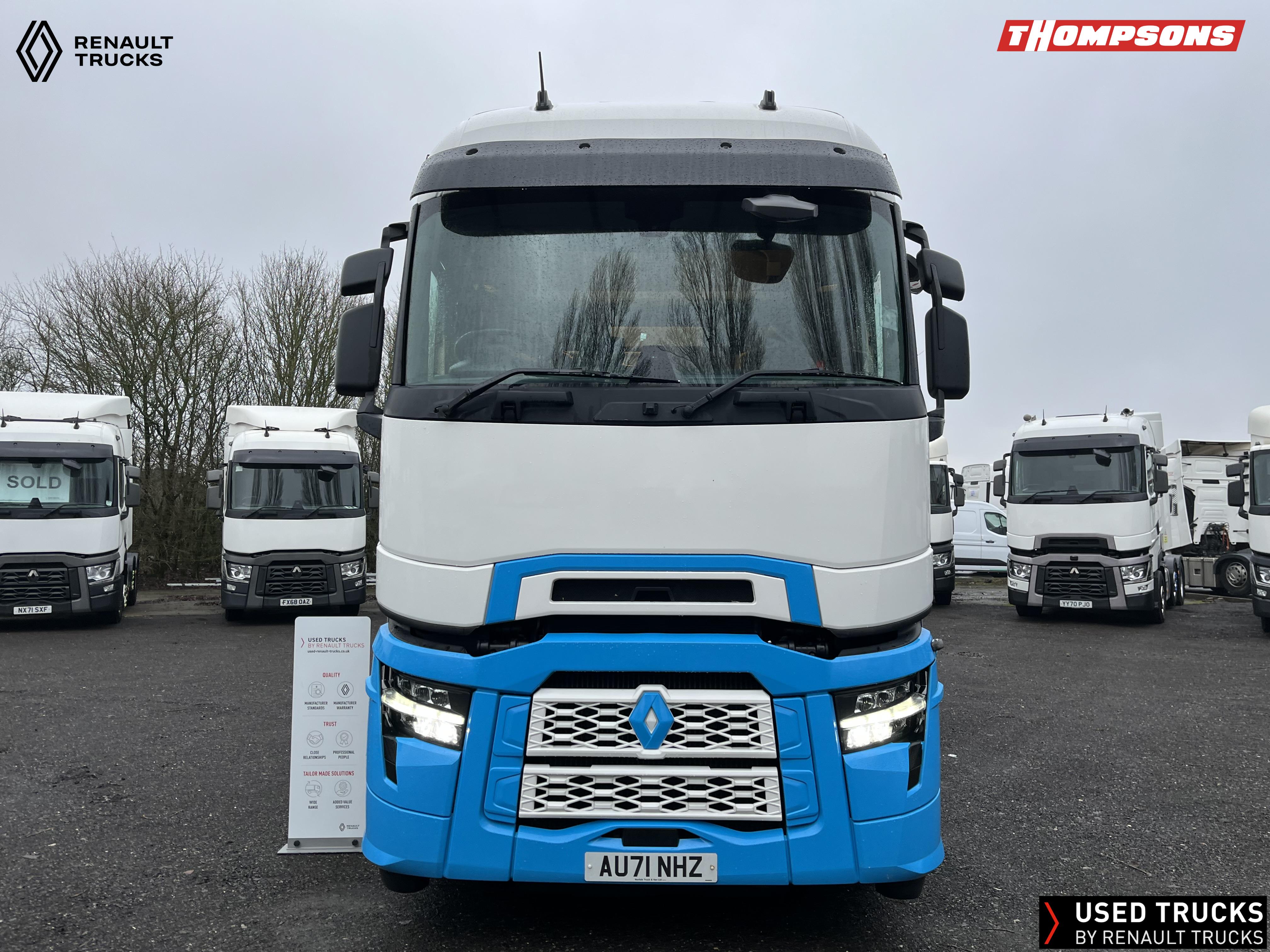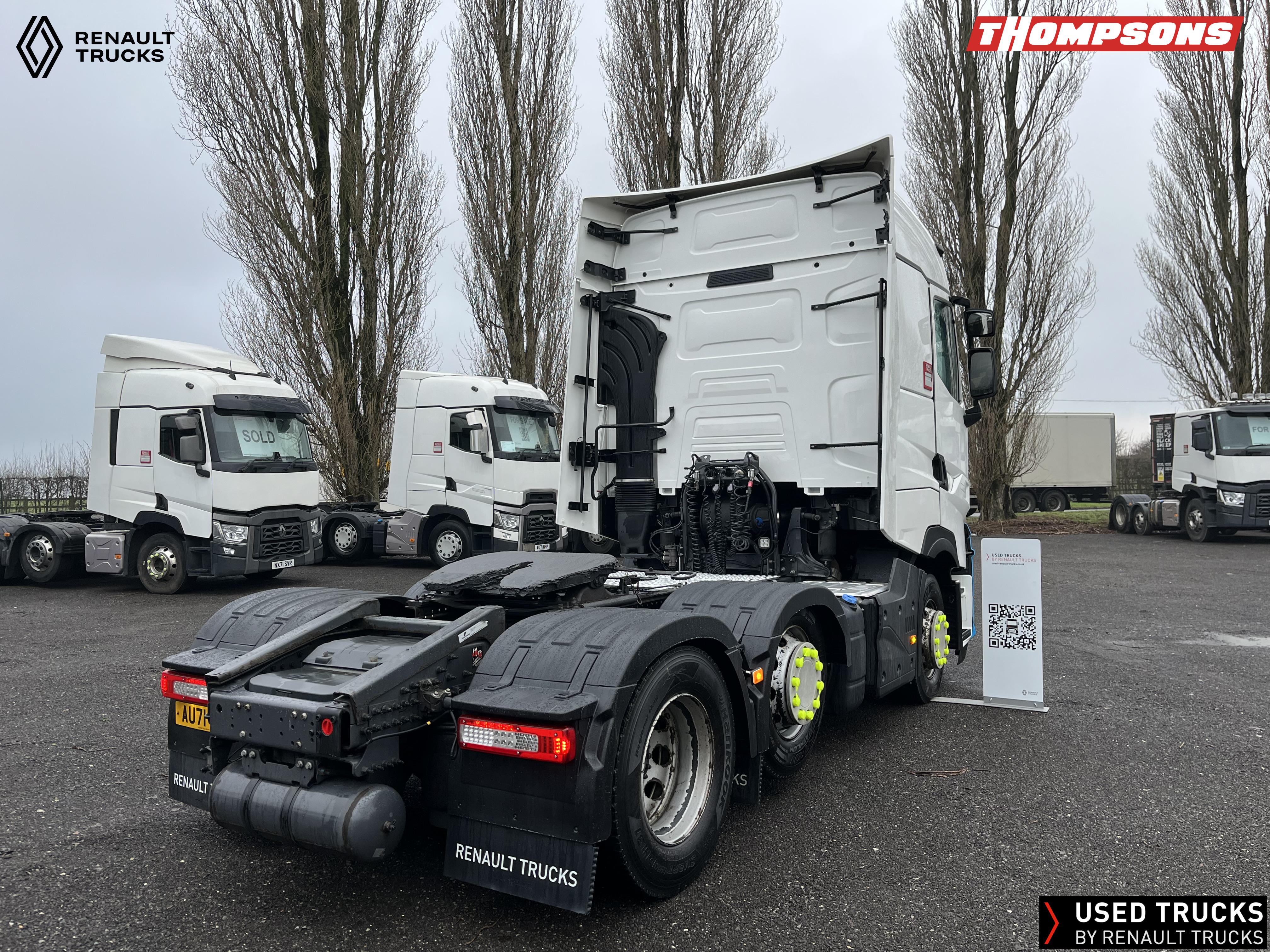 2021 (71) Renault T HIGH Evolution 480.26 TML 6x2 Tractor Unit. Maintained on a Renault Full Repair & Maintenance Contract with just 501,016kms. T HIGH Flat Floor Sleeper Cab, 13 LTR 480 BHP Euro 6 Engine & Automatic Gearbox, Engine Brake, 4-Point Cab Air Suspension, Sun visor, Cruise Control with Optiroll, Lane Departure Warning System, Emergency Brake Assist, Electronically Regulated Comfort Air Conditioning, Full Air Deflector Kit, Electric Windscreen Sunblind, Drawer under Bunk with 40 Litre Fridge, LED Cab Lighting, Remote Control in Bunk Area for Cab Controls, FM/DAB+ Radio with Bluetooth, USB Port & Jack Socket, 4 Loudspeakers & 2 Tweeters. One-Touch Electric Windows, 12/24V Sockets, Sliding 5th Wheel, LED Rear Lights, LED Day Running Lights & LED Work Light, Front Fog Lights, Automatic Lights & Wipers.