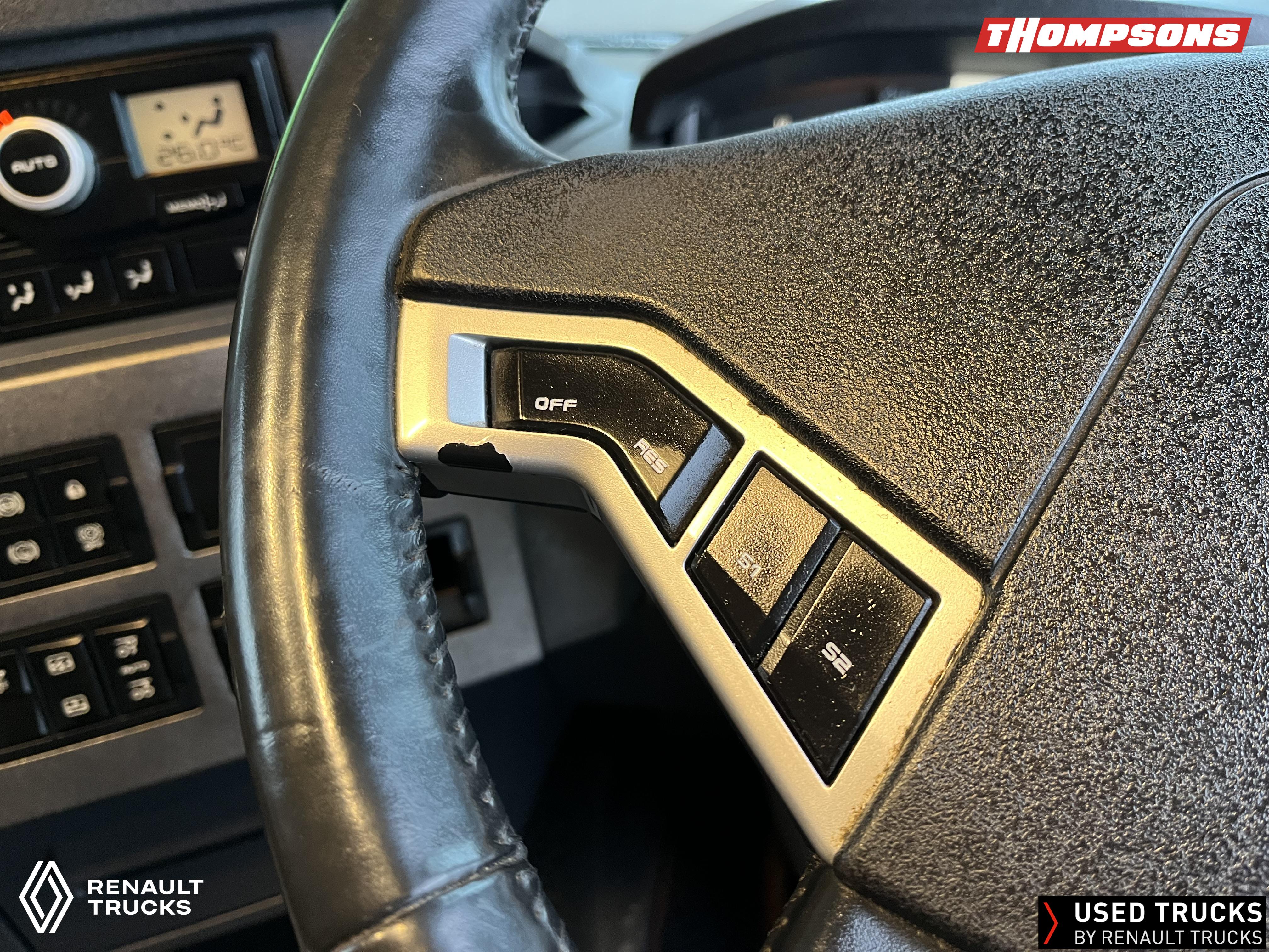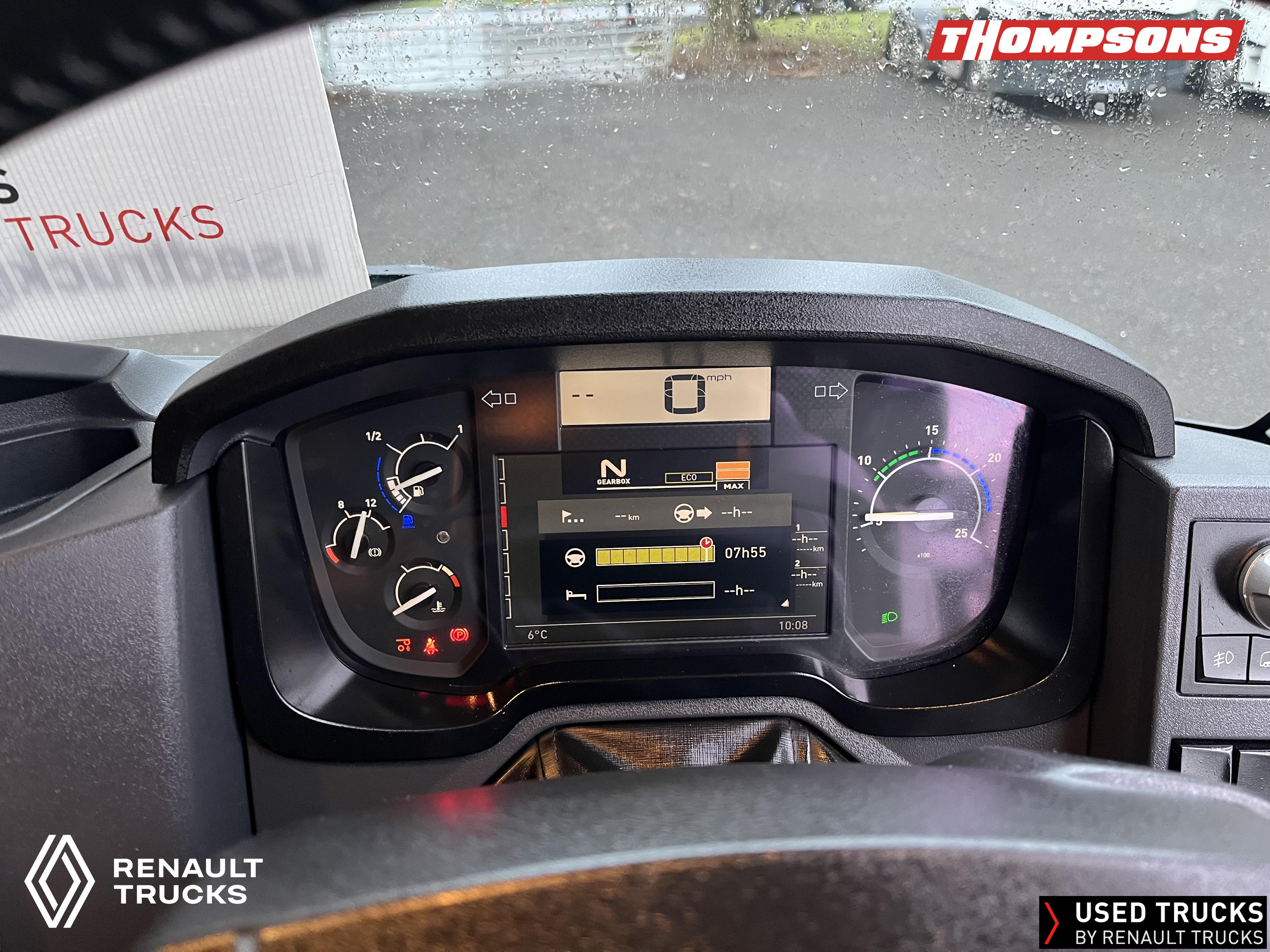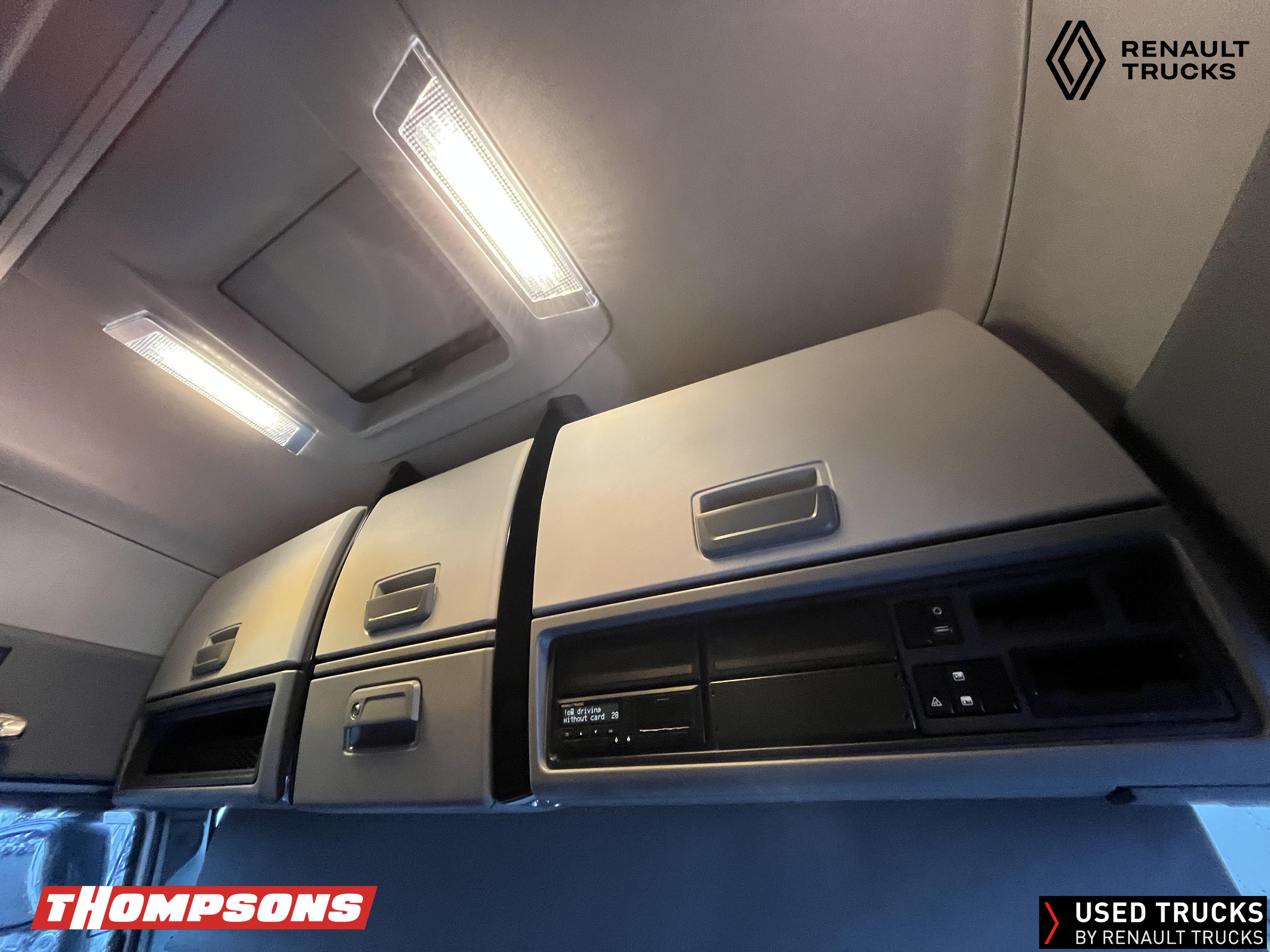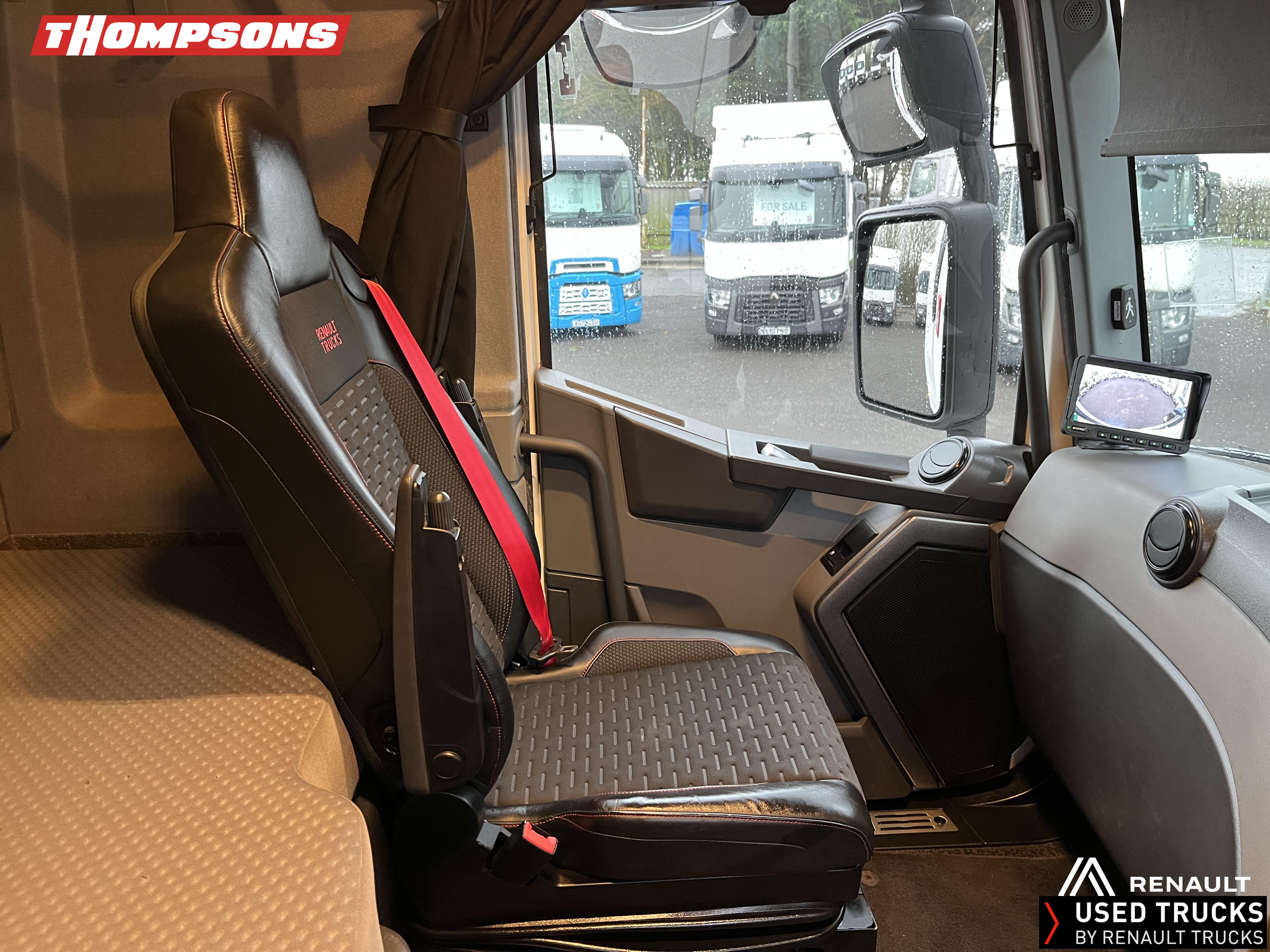 2021 (71) Renault T HIGH Evolution 480.26 TML 6x2 Tractor Unit. Maintained on a Renault Full Repair & Maintenance Contract with just 501,016kms. T HIGH Flat Floor Sleeper Cab, 13 LTR 480 BHP Euro 6 Engine & Automatic Gearbox, Engine Brake, 4-Point Cab Air Suspension, Sun visor, Cruise Control with Optiroll, Lane Departure Warning System, Emergency Brake Assist, Electronically Regulated Comfort Air Conditioning, Full Air Deflector Kit, Electric Windscreen Sunblind, Drawer under Bunk with 40 Litre Fridge, LED Cab Lighting, Remote Control in Bunk Area for Cab Controls, FM/DAB+ Radio with Bluetooth, USB Port & Jack Socket, 4 Loudspeakers & 2 Tweeters. One-Touch Electric Windows, 12/24V Sockets, Sliding 5th Wheel, LED Rear Lights, LED Day Running Lights & LED Work Light, Front Fog Lights, Automatic Lights & Wipers.